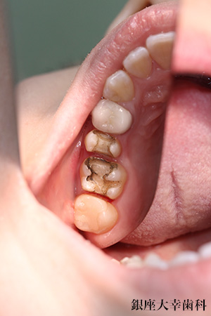 この患者様は30代女性です。3年前に治療した金歯が気になるのが主訴でした。