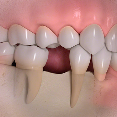 ムシ歯で歯を失った場合と歯周病で歯を失った場合。