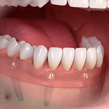 インプラントを複数本使ったブリッジ - 右下の臼歯部を三本失った場合